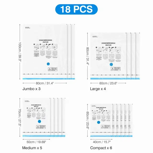 Rely on the durability of our Vacuum Storage Bags. Made from high-quality, tear-resistant materials, these bags are designed to withstand repeated use, ensuring your items stay protected and compressed trip after trip.
